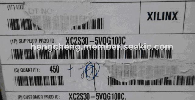 XC2S30-5VQG100C absolute maximum ratings: (1)VCCINT, Supply voltage relative to GND: –0.5 to 3.0 V; (2)VCCO, Supply voltage relative to GND: –0.5 to 4.0 V; (3)VREF, Input reference voltage: –0.5 to 3.6 V; (4)VIN, Input voltage relative to GND: 5V tolerant I/O(4):–0.5 to 5.5 V; No 5V tolerance: –0.5 to VCCO+0.5 V; (5)VTS, Voltage applied to 3-state output 5V tolerant I/O:–0.5 to 5.5 V; No 5V tolerance: –0.5 to VCCO+0.5 V; (6)TSTG, Storage temperature (ambient): –65 to +150℃; (7)TJ, Junction temperature:+125℃.